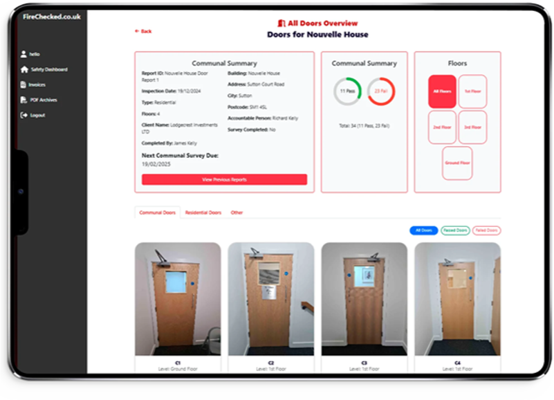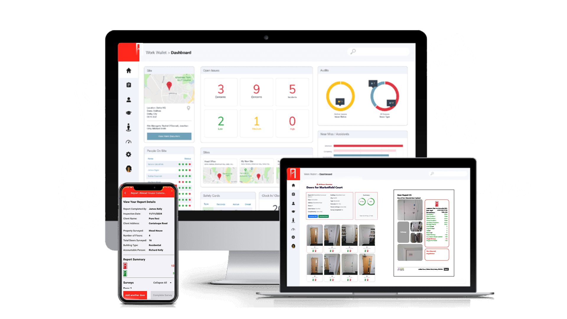 Simplify fire safety management with our user-friendly platform. Access a dashboard offering an at-a-glance view of all fire door reports for streamlined oversight. Centralise your fire safety data, automate scheduling, and receive real-time reporting to ensure compliance with UK regulations.